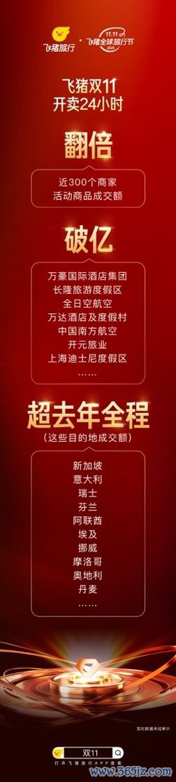 10月22日,据飞猪音书,双11开卖24小时,万豪国际旅社集团、长隆旅游度假区、全日空航空、万达旅社及度假村、中国南边航空、开元旅业、上海迪士尼度假区等品牌活动商品成交额纷纷破亿。近300个商家活动商品成交额较客岁翻倍。出境游证明尤为亮眼,新加坡、意大利、瑞士、芬兰、阿联酋、埃及、挪威、摩洛哥、奥地利、丹麦等指标地活动商品成交额均已晋升客岁双11全程。